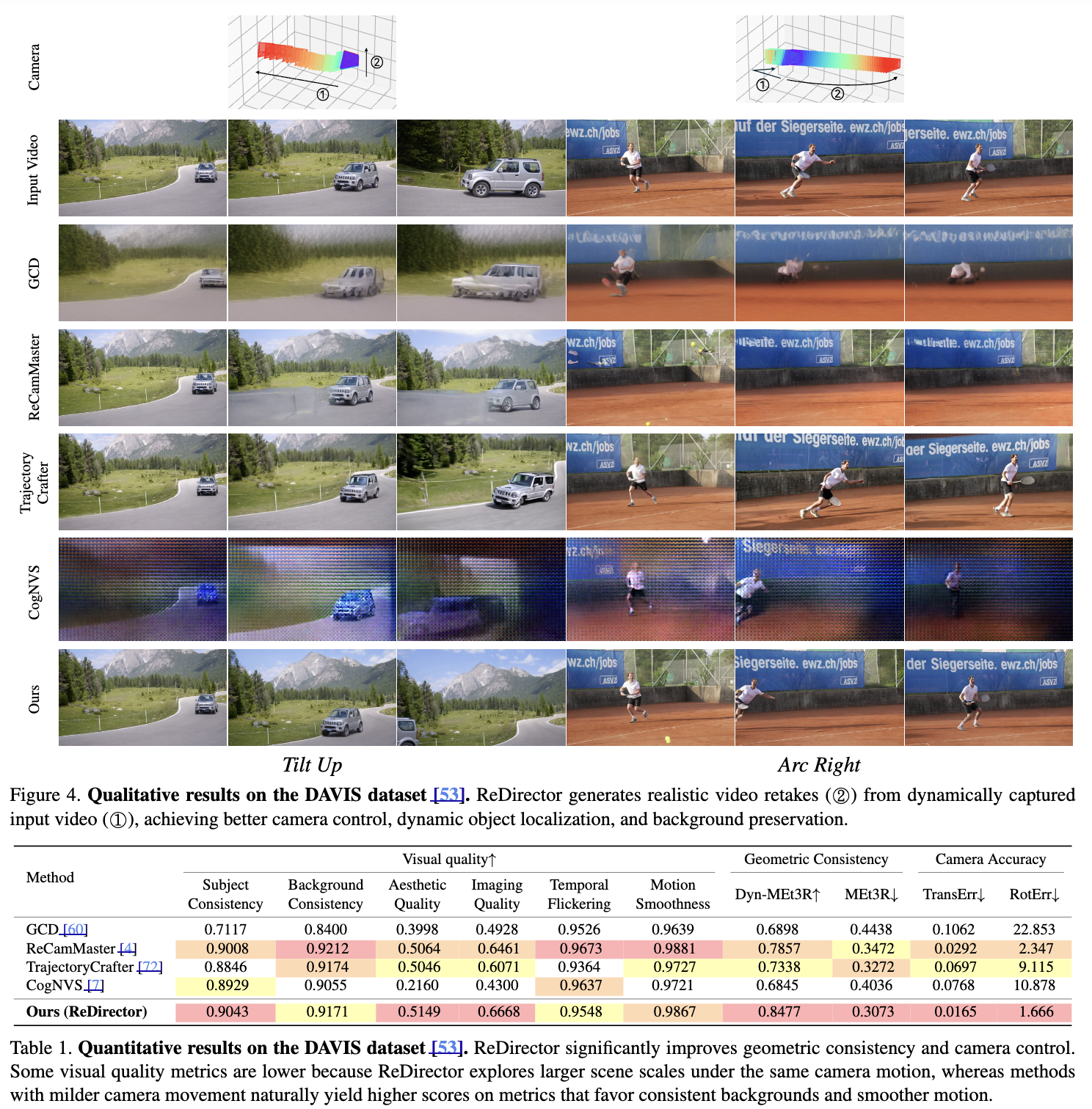 ReDirector generates camera-controlled video retakes for dynamically captured variable-length videos.